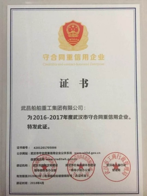 近日,為表彰武船集團對武漢市的社會信用體系建設(shè)作出的突出貢獻,武漢市工商行政管理局、武漢市精神文明建設(shè)指導(dǎo)委員會辦公室和武漢市社會信用體系建設(shè)領(lǐng)導(dǎo)小組辦公室聯(lián)合為武船集團頒發(fā)了2016-2017年度武漢市“守合同重信用企業(yè)”證書。